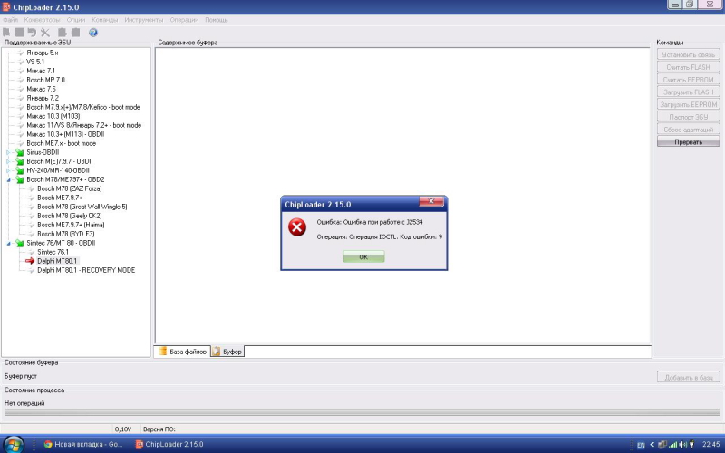 Не получается писать чиплодырем, использвуя в качестве j2534 устройства адаптер cantiecar. Чиплодырь адаптер видит. Посредством него паспорт ЭБУ показывает правильно. Но при попытке записи выдает ошибку