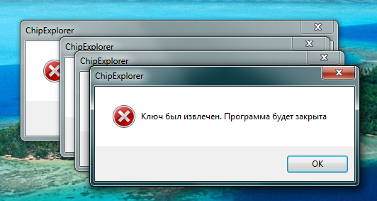 Ключ точно от ChipExplorer? Раньше с ним работали, на другом компьютере пробовали?