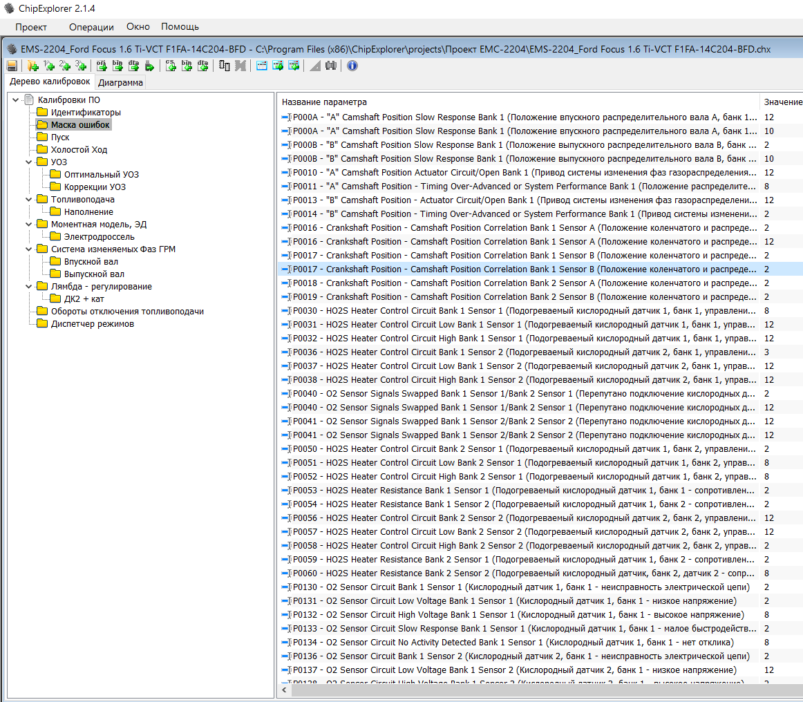 Модуль ChipExplorer 2 для редактирования EMS-2204 для Ford Focus 3 (рестайлинг) 1.6 Ti-VCT. Поддерживается 16 софтов (на скрине). Работает с прошивками разъемом 2048 кВ. КС считается в загрузчиках.