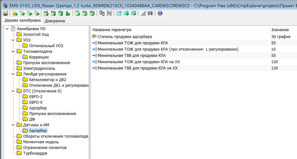 Модуль для редактирования EMS-3155. Данные ЭБУ устанавливаются на авто семейства Nissan (Qashqai и др.), с двигателем 1.2L турбо с прямым впрыском топлива GDI. Размер прошивки 2560 кВ.
