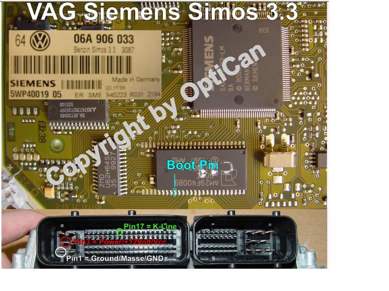Глянь фото этого блока выше, там 104я нога подвешена на 5в через резюк 3.9к, если использовать 3.3к на массу получится делитель примерно 50/50, тоесть на ноге будет 2.5в, проц не войдет в бут, а если взять 330 Ом, это делитель 1/10 0.5в соответствует лог 0. Или надо выпаять подвешивающий резюк, и тогда можно хоть 330 Ом, хоть 15кОм на массу и все ОК.Witold писал(а):Этот блок читается так же как и Симос3.3., без вариантов. Подключение на https://wiki.obdtuning.de/index.php?tit ... mos_33.jpg