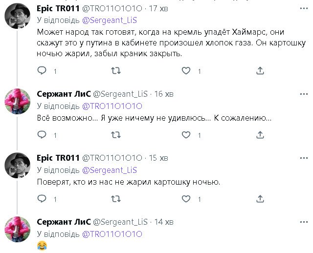 Оце руZню карьожить. Я задоволений. Ви коли нападали, чим думали? Це вам не Чечня, і не Сирія.