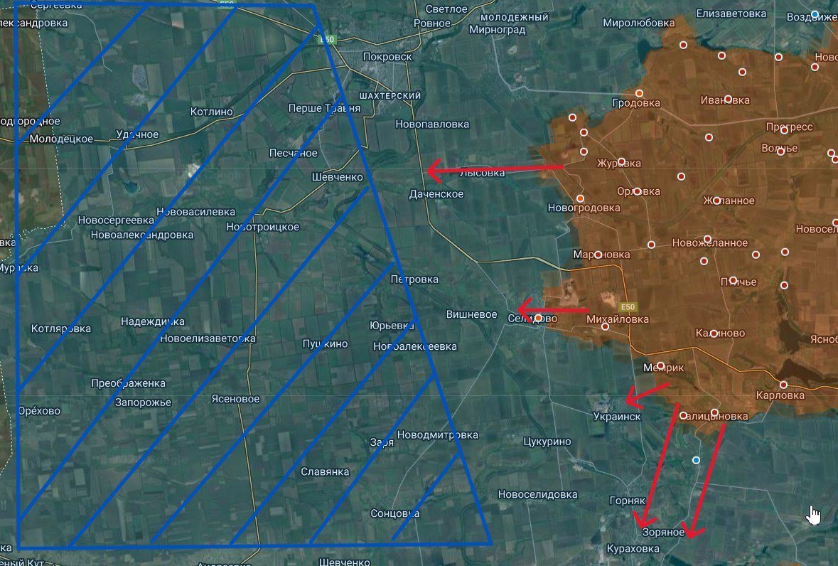 Направления ударов Армии РФ...После падения Украинска и обеспечения флангов, даже Покровск можно не брать...Дальше Днепропетровская область, где просто ПУСТОТА...Поэтому сейчас на линию гонят и гонят РЕЗЕРВЫ из Генштаба ВСУ...01.09.2024