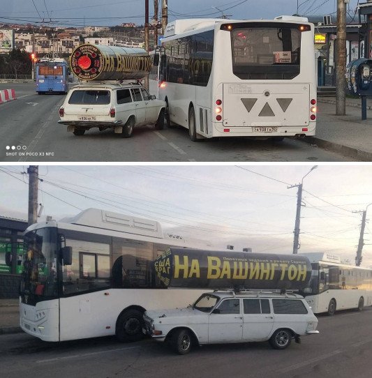 В оккупированном Севастополе ракета "Сармат" попала в автобусС Zомбанутыми мозгами не только трудно жить, а и управлять авто тоже.
