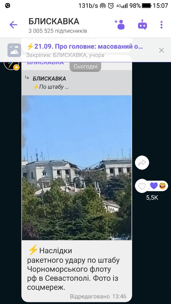 Поздравляю сегодня ВСУ поразили впервые что то важное.Штаб ЧМ!!!!!!Поздравляю.Это было единственное проукраинское место во всей спецоперации.Уже начались должностные уволнения,как ненужных.Половина штаба это бывшие ВСУ,ваши наверно типа предатели и разведчики.Поздравляю ВВП начал законные репресии.