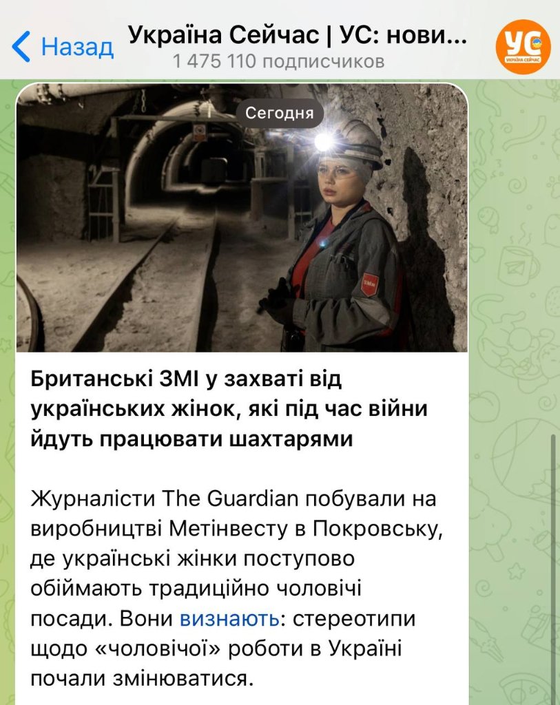 Украинские ресурсы гордо пишут о том, что британские СМИ хвалят украинок за то, что они не смотря ни на что идут работать в шахты и выполняют тяжелую мужскую работу.
