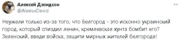 Обстрел Белгорода по телику идет по полной.Нужно поддерживать градус ненависти и войны по телику.КВАРТАЛ-95 тут очень помогает.Главное вовремя не сбивать,когда надо.Короче исходя из местных утюгов,с вами все будет очень хорошо.