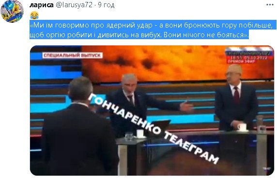 «Ми їм говоримо про ядерний удар - а вони бронюють гору побільше, щоб оргію робити і дивитись на вибух.