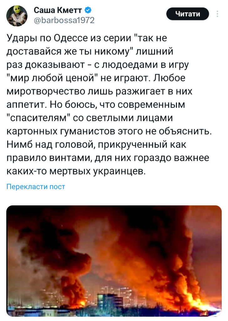 Тепер ясно, чому вони бьють по житлу і по лікарнях? Путін на них заборони не давав.