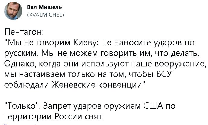 Чучелоelektrikigor писал(а): ↑Сб дек 10, 2022 8:59 pmНачалась последняя поголовная мобилизация в ВСУ.Война еще года на три,не меньше.Во всем мире на Земном шарике,кроме Украины,закончились вооруженные конфликты,никто больше не воюет.Америка и Европа больше не может тянуть войны в других местах.Слабаки оказались.Так что года три мир будет отдыхать и развиваться без демократических бомбардировок Америки.Видно поэтому ВВП и растягивает эту войну.Но они воюют вашими трупами.