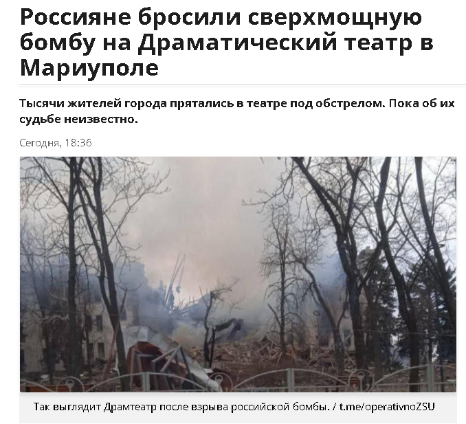 Вот реально назови мне причину, по которой наши бы нанесли по театру удар, зная, что там мирных жителей загнали???