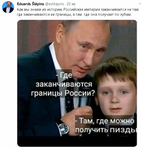 Они сами пришли к выводу-хороший русский,это мертвый руzkiйперекатиполе писал(а): ↑Пн мар 13, 2023 1:29 amа как с теми, кто против войньі и говорит - если бьі Украина не сопротивлялась, то все давно бьі закончилось?