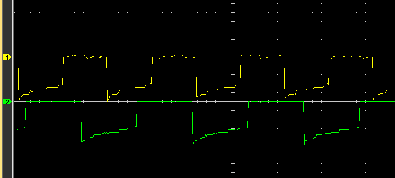 Перепрошил GPT адаптер, без перемычки просто мигает, с перемычкой мигает сериями. Вот осцилограммы того и того. Все так?