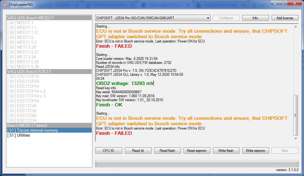 ChipLoaderNG 3.1.0 & Bosch MEDC17 - Bench