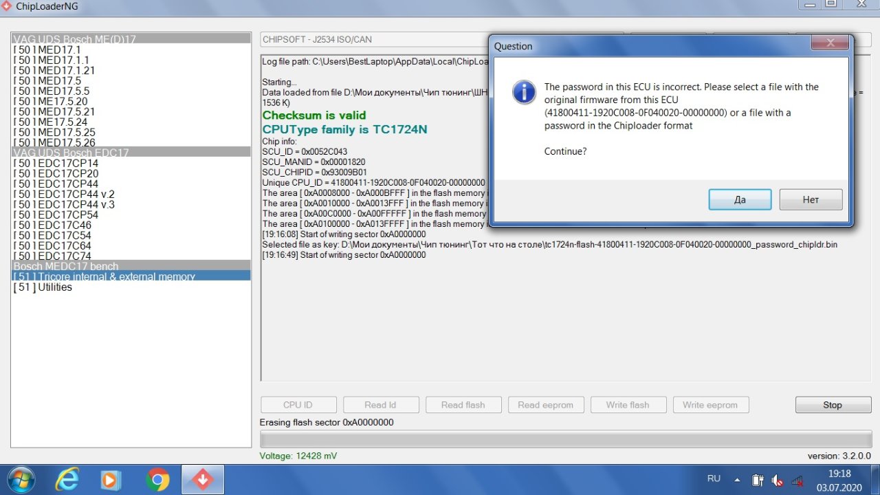 И 51-й модуль "просит" ввести пароль именно в формате ChipLoader.