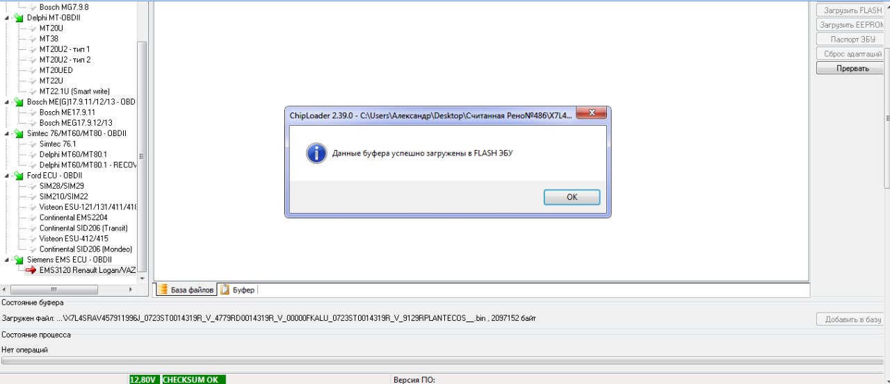 Сегодня другой Renault Logan. Напряжение на БП сразу выставил 13,2В (в программе-12,8В). Считывание, запись-без проблем. На всех авто из доп. оборудования установлено только ГБО OMVL DREAM XXI E. Нормальной схемы этого ГБО не нашел, но насколько знаю, влиять на запись оно не может. Остается напряжение.