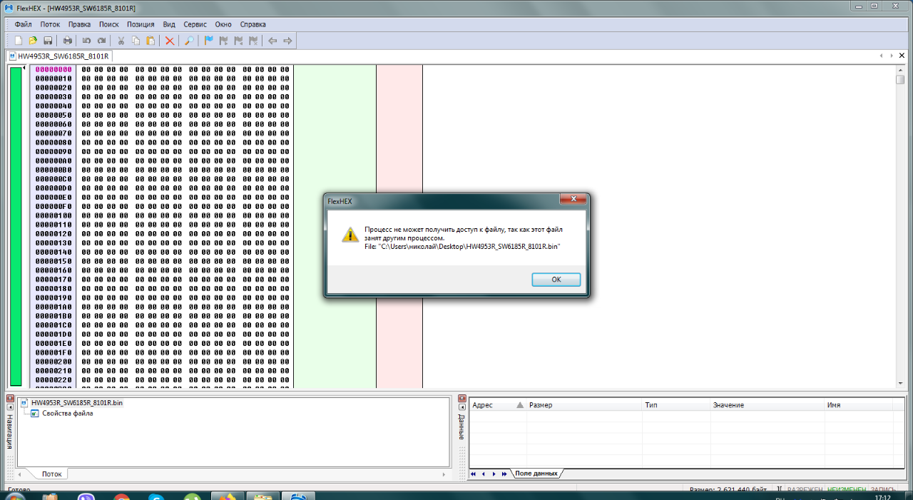 Перечитал внимательно еще раз и понял почему вы задаете этот вопрос повторно. Вы не правильно поняли текст выше. Имелось ввиду открыть файл с одним и тем же содержимым, но под разными именами. То есть два разных файла. А если открывать один и тот же, то он действительно не открывается потому что занят уже. Павел ST считал прошивку с авто и сохранил ее под своим названием, а при сравнении выбрал уже имеющуюся прошивку под другим именем. И получил "файлы идентичны" но с разными потоками.