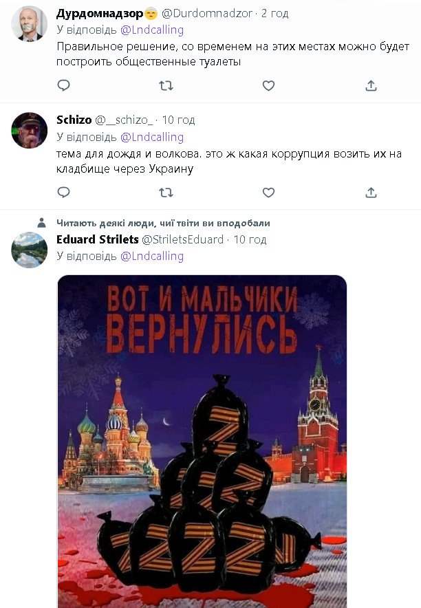 Если тебе похер чучело, хавальник завали и сиди молча.elektrikigor писал(а): ↑Сб дек 17, 2022 2:58 pmДа мне вообще похер.Но со спецоперацией полностью согласен.Еще пару лет вам придется кайфовать,но это меньше чем 8 лет.stutterer писал(а): ↑Сб дек 17, 2022 2:49 pmЧучело зомбированное, пакеты чмобикам не забудь выдать.elektrikigor писал(а): ↑Сб дек 17, 2022 2:24 pmПродолжение,судя по картам,людские человеческие ресурсы слегка заканчиваются на Украине.Надо новых и в бой,а то красных стрелочек много,а синих нет.И пока мобилизованные у нас сидят на полигонах.А так вообще тут у нас по телику 8 лет показывали ВАШИ!!!!! видео,как нацики маршируют,москаляку на гиляку,уничтожай русню,розовые довольные рожи которые бомбят Донбасс и при этом не скрывают этого и много другого именно вашего видео и по телику и на всю страну и каждый день.Народ просто хочет освободить теперь от нечисти все русские Земли.Даже не надо пропаганды Кремля,вы сами все сделали.