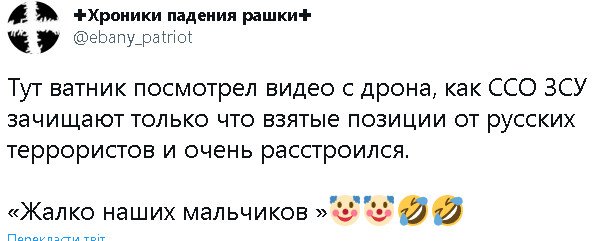 Кончай бухать,курить,хрен его знает ,что тебя долбоеба так вставляет,кстати повестку тебе уже принесли,или сьебаться хочеш,а как же путлеропатриотизм?, а то ты уже подзаебал нести этот бред,свои мысли есть?,или все зомбоящик промыл?