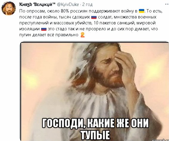 Да, наоборот.Amelj писал(а): ↑Сб мар 04, 2023 9:51 pmдурик, так всё наоборот. Это вы сосете у всего мира как попрошайки чтобы вас вооружили. Ни снарядов, ни танков, ни самолетов нет, всё похерили. Ролики посмотри про люпардов которых вы отсосали какие они зорошие на чернозёме и в грязи....stutterer писал(а): ↑Сб мар 04, 2023 6:17 pmУ вас есть чудо телевизор, в котором все хорошо. Смотрите дальше.