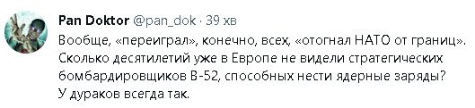 — Россия ещё ничего не начила, потому что испытывает оружие;