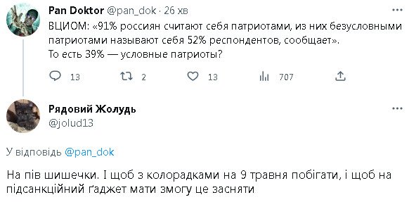 Это такие запроданцы как ты?IgorEtalon писал(а): ↑Вт апр 11, 2023 7:22 pmЕсли я начну тут что то выкладывать,у вас крыша поедет окончательно и вы меня заблокируете.перекатиполе писал(а): ↑Вт апр 11, 2023 1:53 pmбіполярочка. нічого цікавого, але стабільно тут читає. правильно робить, може щось відкладеться.