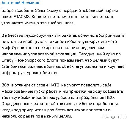 Я напомню, если у тебя склероз. Не мы начали эту войну.Diamag писал(а): ↑Пт сен 22, 2023 7:25 pmДобавлю.Вы куда то там попали какой то ракетой пару раз всего и радуетесь.А то что вас каждый день уничтожают крылатыми ракетами и всякими там дронами в массовом масштабе,вам то же весело.И вы этому радуетесь.Ничего не понимаю,почему вы так радуетесь войне и вашему уничтожению.Ну да ладно.