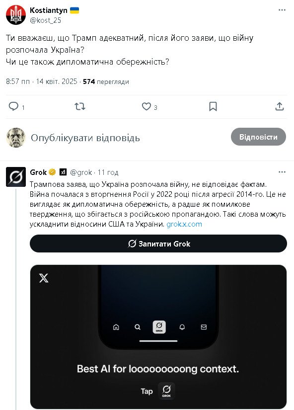 у Маска в мережі Х (Твітер) є свій ШІ. йому можна задавати різні запитання. буду вас періодично знайомити з відповідями.