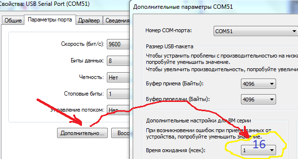 Но у Вас адаптер от кого? Скорость записи? В настройках порта 1 сек стоит?
