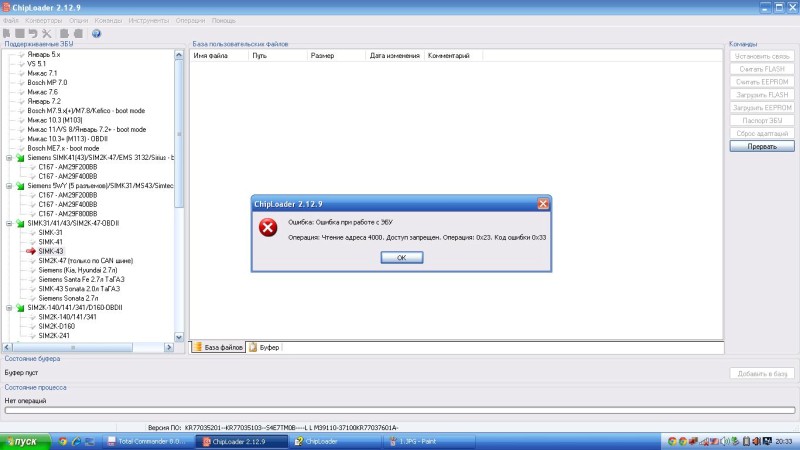 Сегодня не смог прочитать Hyundai Elantra Simk43(2-разъема) 2006г. 1.8L. MKPP по OBD чтение доходит до примерно 70% и вываливается такая ошибка, в чем может быть проблемма? Через БСЛ считалось без проблемм.