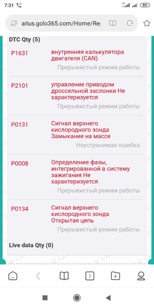 Ошибка висит одна P1631 иногда выскакивает по дросселю это наверное следствие.