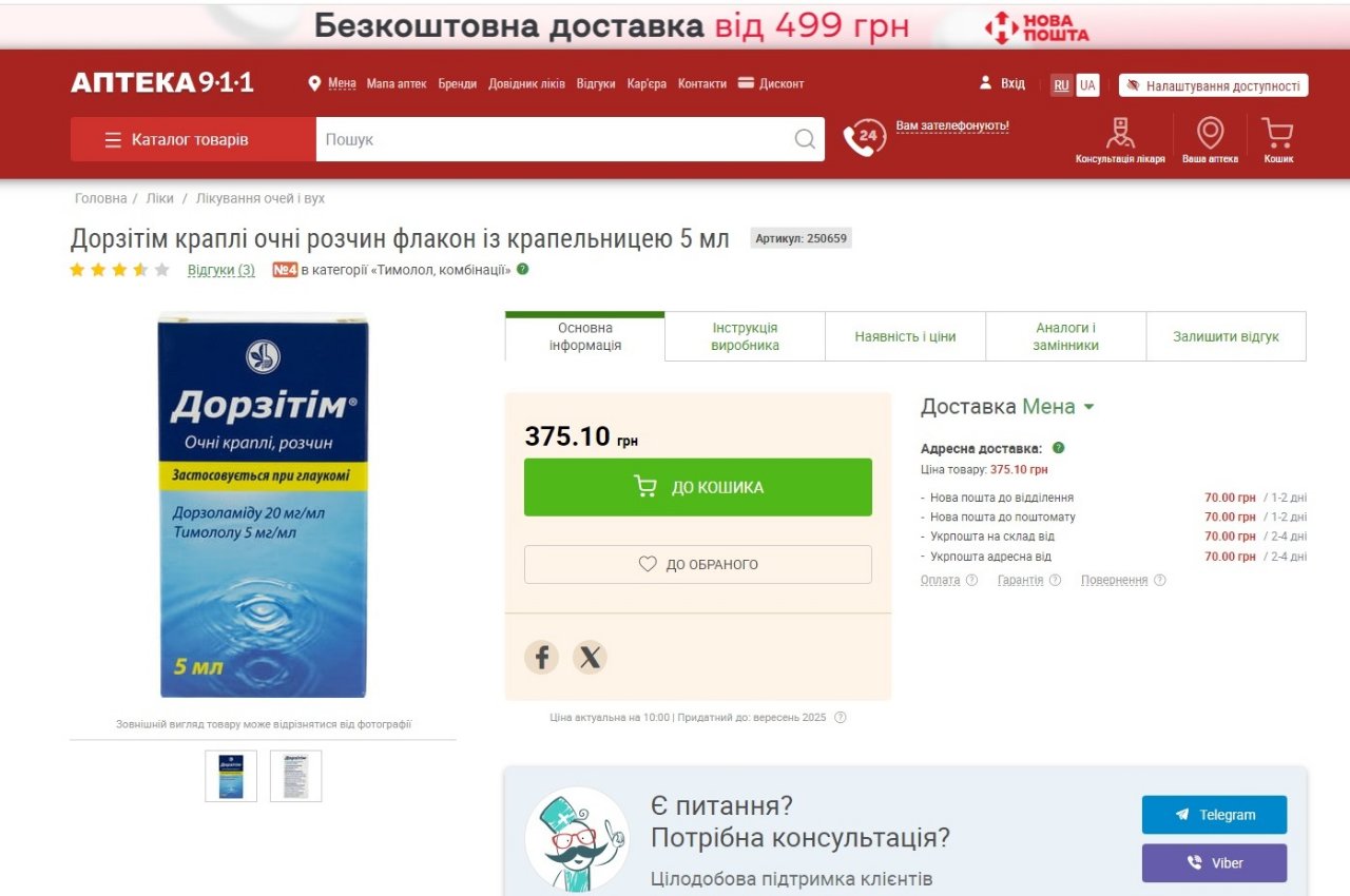Доброго! Чи може хто в Миколаєві купити очні краплі Дорзітим і вислати по НП. Ні у нас в регіоні, ні в Києві нема по наявності. Контакти в підпису. Дякую.