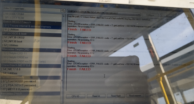Попробовал сегодня прошить edc17cv54 автомобиль Пазик Вектор Некст, 51 модулем, не читает и не пишит, ошибка во вложении, сделал сканматикам, даже на диагностику не выходит