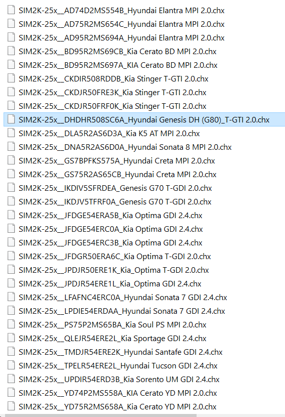 Добавил SIM2K-25х__CKDJR50FRE3K_Kia Stinger T-GTI 2.0. Если у кого есть еще стоки, скидывайте. Лучше сразу добавить. На настоящий момент 28 карт калибровок в модуле.