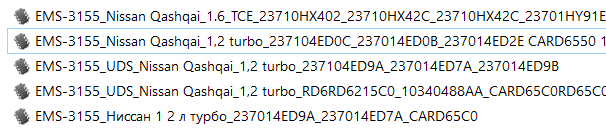 Модуль для редактирования EMS-3155. Данные ЭБУ устанавливаются на авто семейства Nissan (Qashqai и др.), с двигателем 1.2L турбо с прямым впрыском топлива GDI. Размер прошивки 2560 кВ.