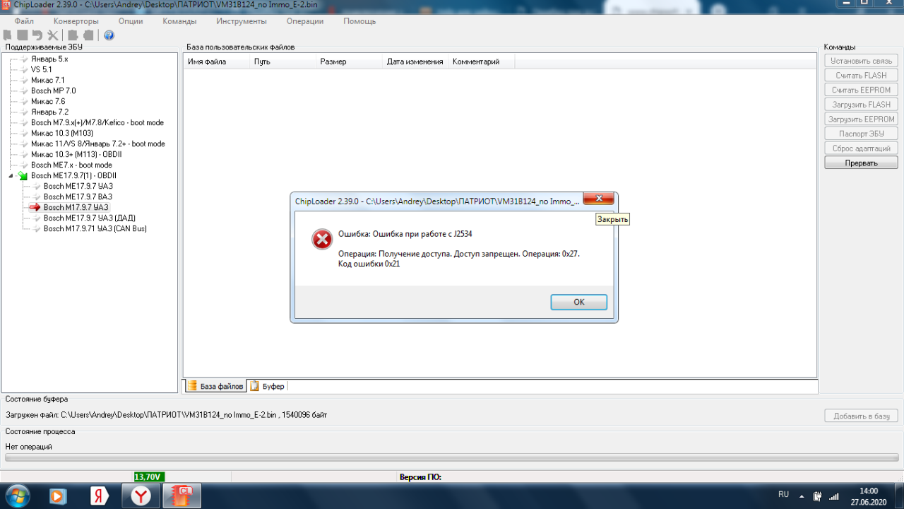 Пробовал на машине через OBD и на столе. Адаптеры Сканмат и OP2 оригинал. За большие буквы Прошу прощения 4 утра было уже. Пробовал Флешер Алекса и Чиплодырь. Алекс не может эти блоки походу делать а у лодыря ошибка при соединении вываливается.Какая еще информация нужна? Я спросил что означают ошибки лодыря. Кто то мне их может пояснить? и как с этим бороться?