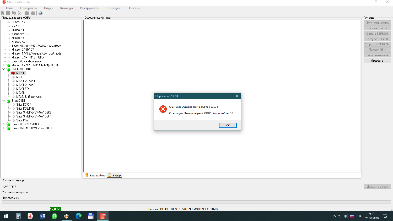 Во время чтения по обд выскочила ошибка (на скрине) и все... на связь блок не выходил пока не отключил клемму АКБ на минуту.