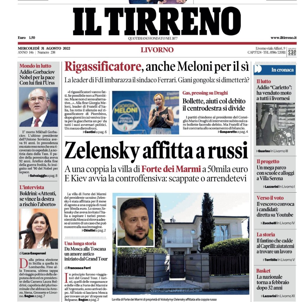 Зеленский сдал россиянам в аренду свою виллу за 50 000 евро, - Il Tirreno