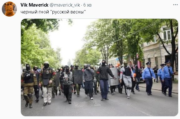 Одесса. 02.05.2014. Провокаторьі из ДП под прикрьітием милиции идут стрелять по футбольньім фанатам.
