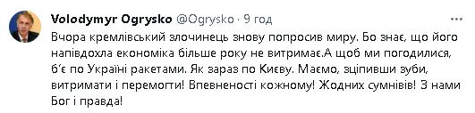 "После беспилотников, которые всю ночь шли по Украине, под утро пошли ракеты.