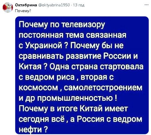 А у ВАС все врут врут врут и притом из каждого утюга.Поэтому вы так и живете.Вы вообще ничего не знаете.Вы изолированы от не нужной вам информации.Технологии однако.