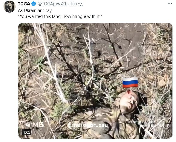 Теперь вы стали тут недочеловеки которых надо мочить и даже не сомневаться.(Поэтому вас на фронте мочат из всего что можно и без жалости и негласный закон пленных не брать.Самый минимальный процент взятия пленных это части с ДНР ЛНР,самый большой процент взятия пленных у ВДВ,видно не все атрофировали у них)