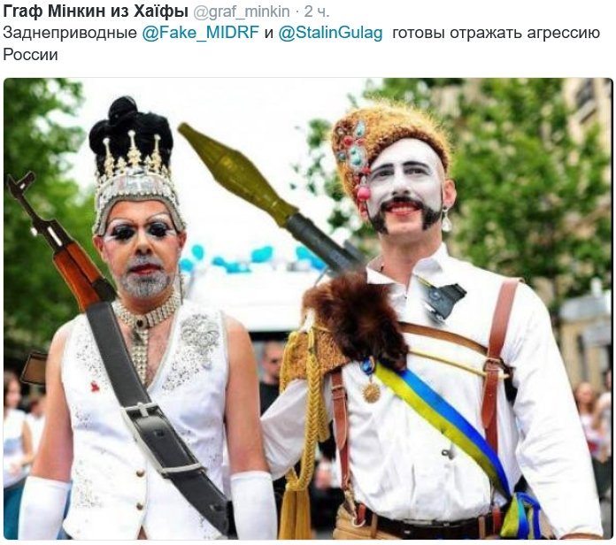 От ти і видав секрет кацапстану. Так от чого ви вторглися, захищати ваших кровних братів - педерастів. Тому що нацисти на них нападали....