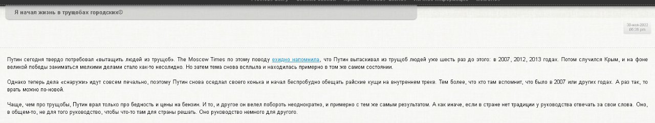 ето да, на левом берегу вам всем пипец ))))))))elektrikigor писал(а): ↑Ср ноя 30, 2022 3:07 pmШирина Днепра очень большая.Форсировать без больших мостов НЕВОЗМОЖНО.Если уничтожить переправы через Днепр в нескольких районах,то пипец всем на левом берегу.Вот и вся война.А пока утилизация.