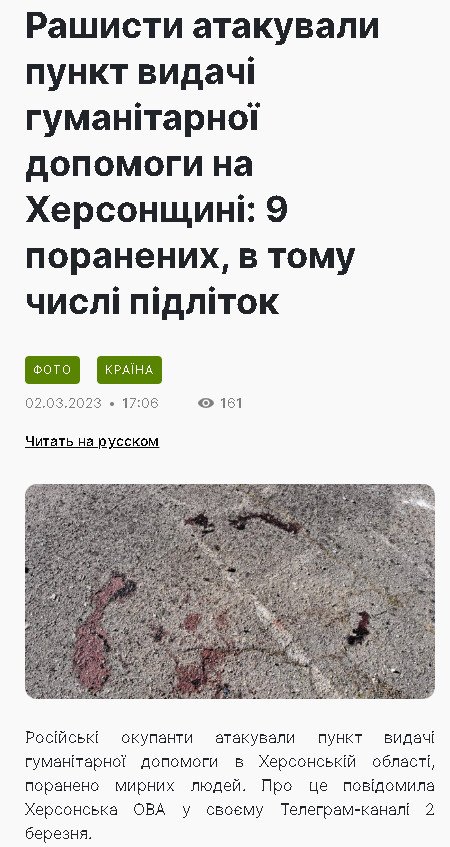 Пропоную iдею,скласти список усiх причетних до злочiнiв,будь- то вiйськовi чи цивiльнi особи , вiдправити на територiю пiдарашки вiдповiдних мисливцiв за головами,i результати розповсюджувати у соцмережах,щьоб усi бачили,щьо зло буде покаране,i не важливо де тварюка його робе ,на полi бою , Чи при виготовленнi ракет, зло повинне бути знищено, пропоную для цього органiзувати вiдповiдний фонд,думаю байдужих не буде