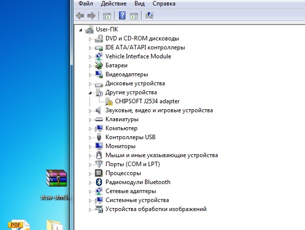 После этого адаптер отображается в диспетчере устройств, как CHIPSOFT J2534 adapter, но с восклицательным знаком, говорит: "Для устройства не установлены драйверы. (Код 28 )"