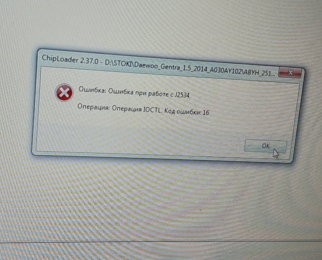 У меня тоже самое, тоже на Джентре (МТ60), как только начинается запись, вываливается - "Ошибка при работе с J2534.Операция IOCTL.Код ошибки 9". Только я не передергивал зажигание, а просто начинал писать заново, и со второй попытки запись начиналась!
