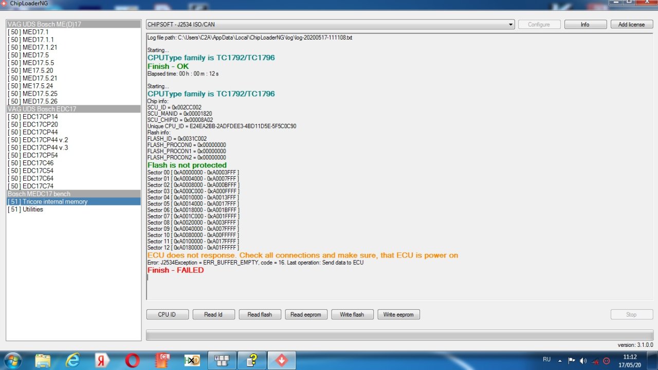 Re: ChipLoaderNG 3.1.0 & Bosch MEDC17 - Bench