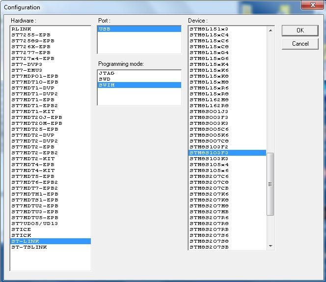 На ST Link v2 RST это на GPT адаптере reset, GND это ground, SWIM это data, 3,3v это VDD.