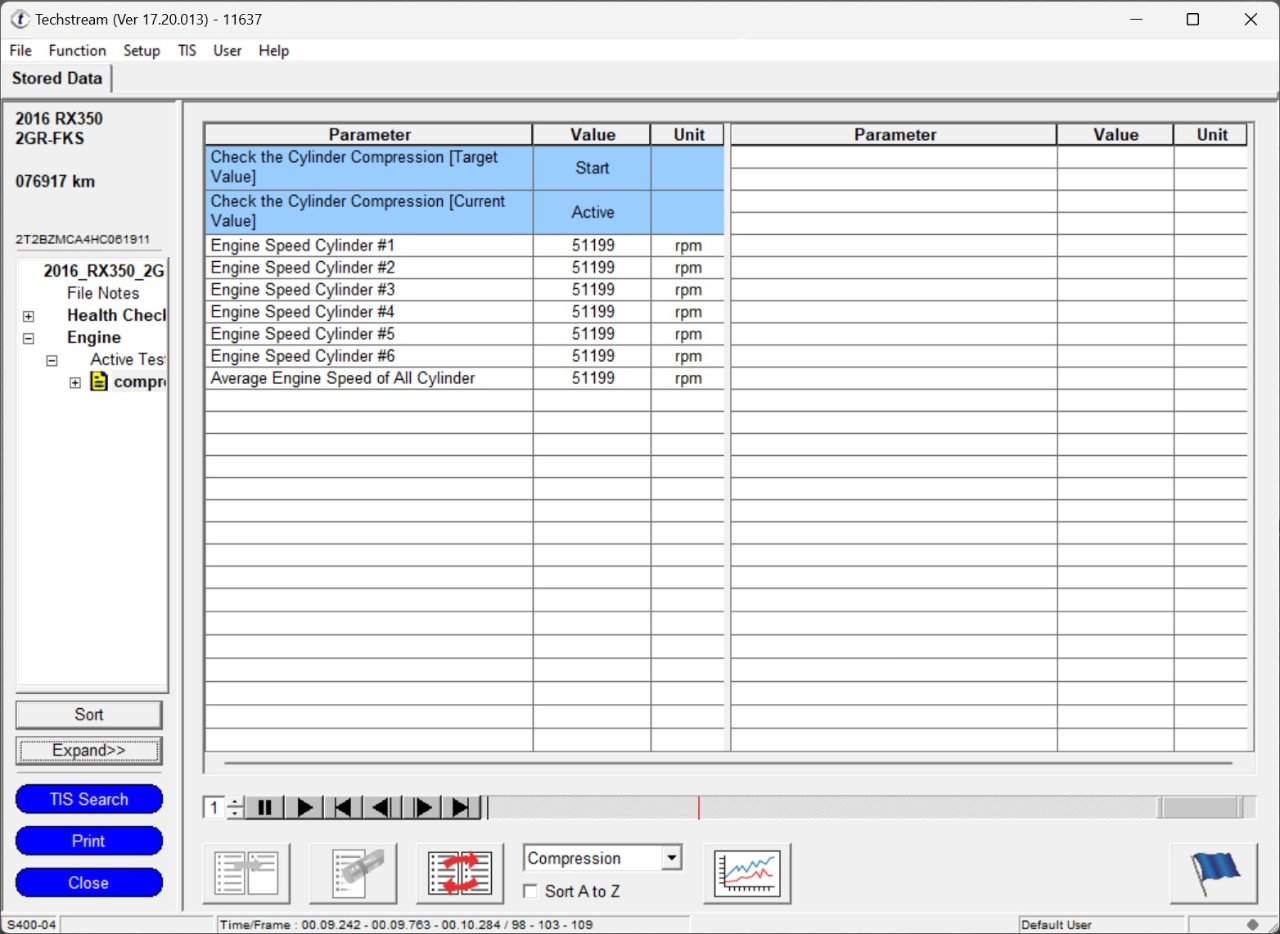 Владею Chipsoft Lite, не могу сделать активный тест на компрессию. Машина Lexus RX 350, 2016 года.